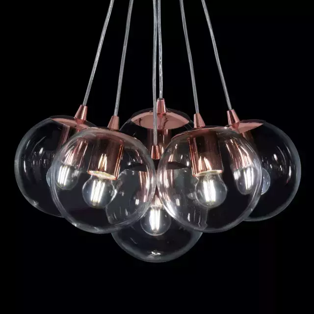 Colgante de Techo Moderno *Ramillete* cobre de 6 Luces Globos de Cristal.